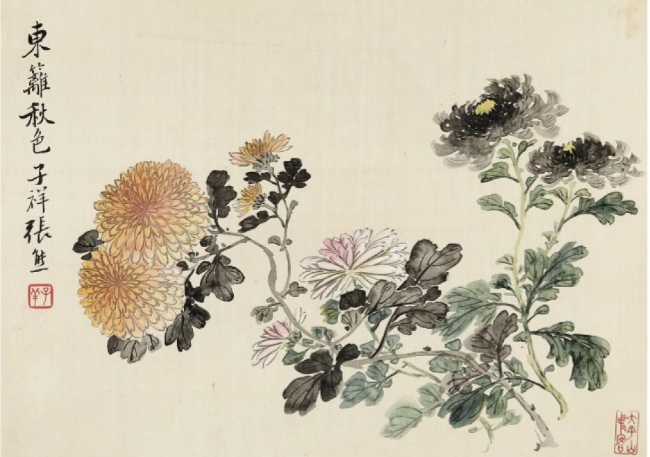 (九)东篱秋色。 子祥张熊。 钤印:子羊
