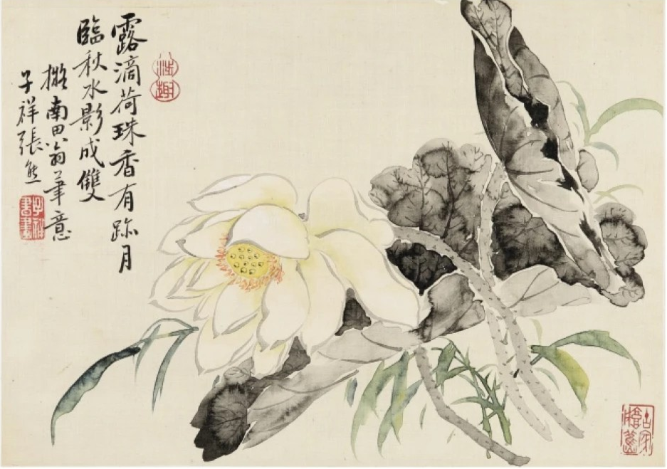 (七)露滴荷珠香有迹,月临秋水影成双。 拟南田翁笔意,子祥张熊。 钤印:子祥书画