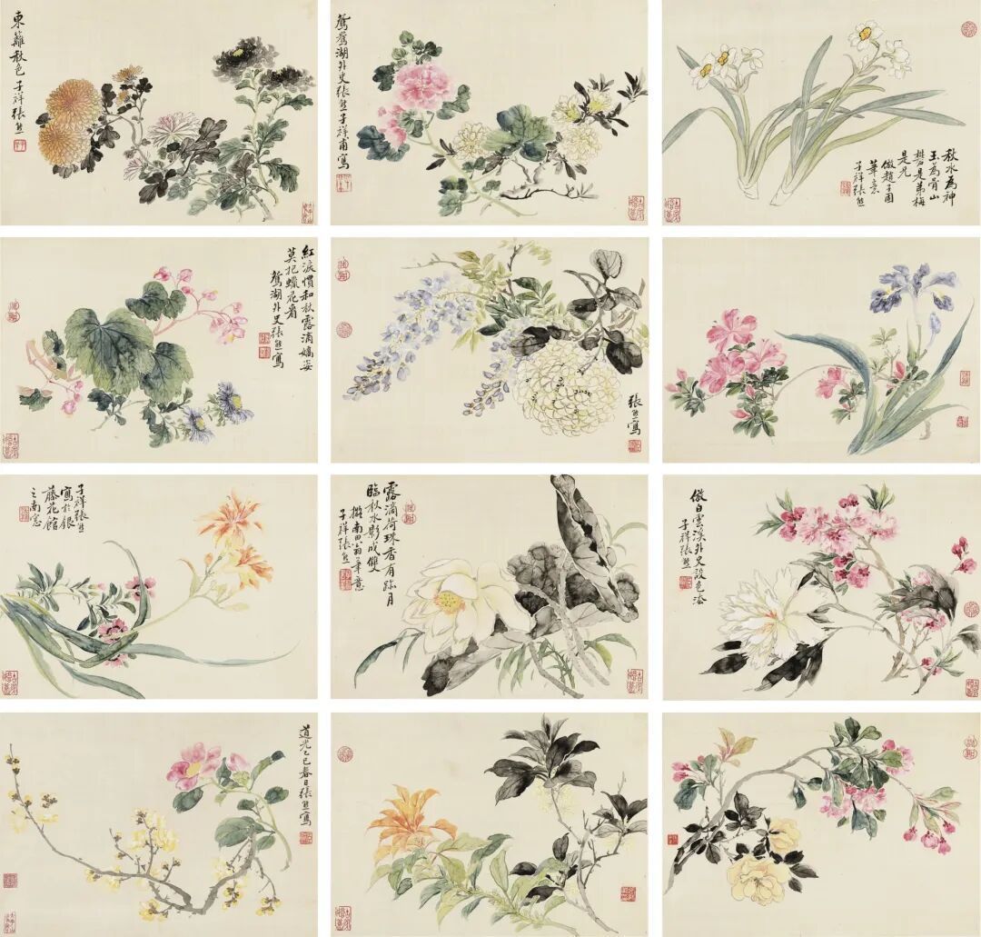 张熊的《四季花卉册》,就像一首四季的歌谣,每一页都唱着不同的旋律,让人在欣赏画的同时,也感受到了四季的变化和生命的美好。