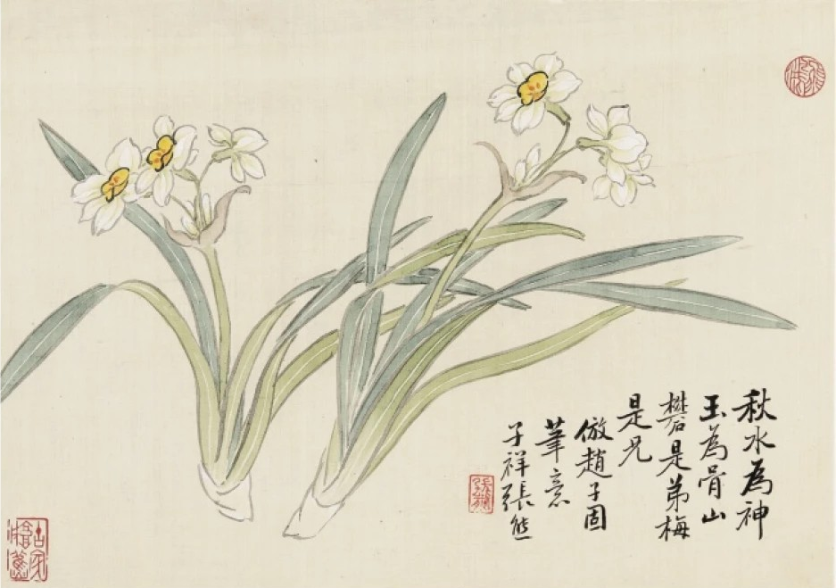 (一)秋水为神玉为骨,山矾是弟梅是兄。 款识:倣赵子固笔意,子祥张熊。 钤印:张熊